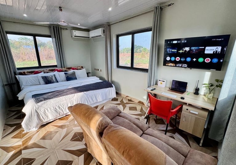 Welcome to The Secret Oasis Ghana, an eco-retreat offering serene Airbnb accommodations surrounded by nature, just minutes from the Tafi Atome Monkey Sanctuary. Experience tranquility and adventure in one place.