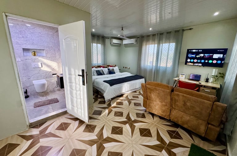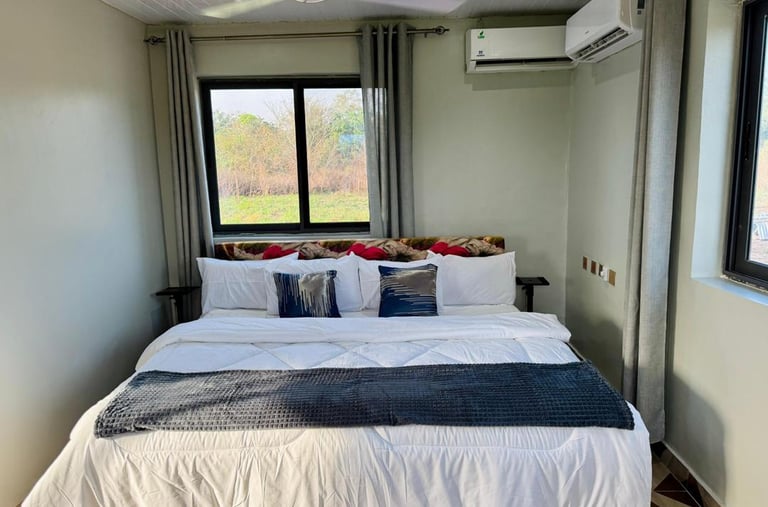 Experience tranquility in our Forest Cabin, surrounded by lush greenery. Perfect for nature lovers seeking a peaceful retreat just minutes from Tafi Atome Monkey Sanctuary. Enjoy modern amenities and serene views.